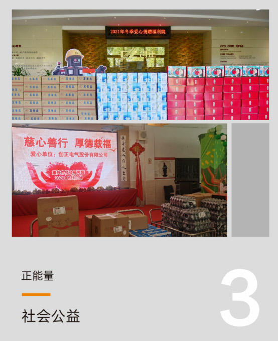 “慈善是企业向上的力量”,公益文化已经成为了创正企业文化的重要组成部分。回顾2021年创正积极参与了一系列公益项目,在企业快速发展的同时继续开展社会公益活动,传播正能量,为社会发展贡献一份力量。