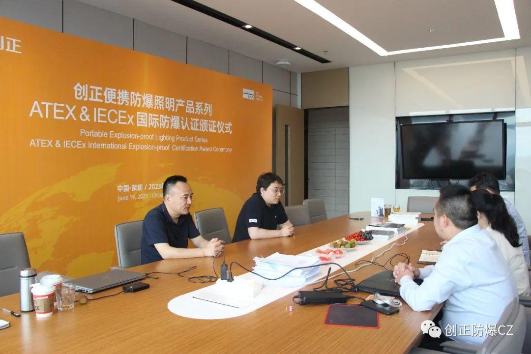 2023年6月19日深圳,国际著名质量认证和风险管理机构DNV挪威船级社为创正电气股份有限公司(以下简称“创正”)颁发ATEX及IECEx产品认证证书、防爆管理体系证书。创正总经理黄建锋先生,创正技术负责人张卫先生,DNV工业产品业务总监李响先生,DNV中国区防爆技术总经理任志华先生等双方代表出席了此次颁证仪式。