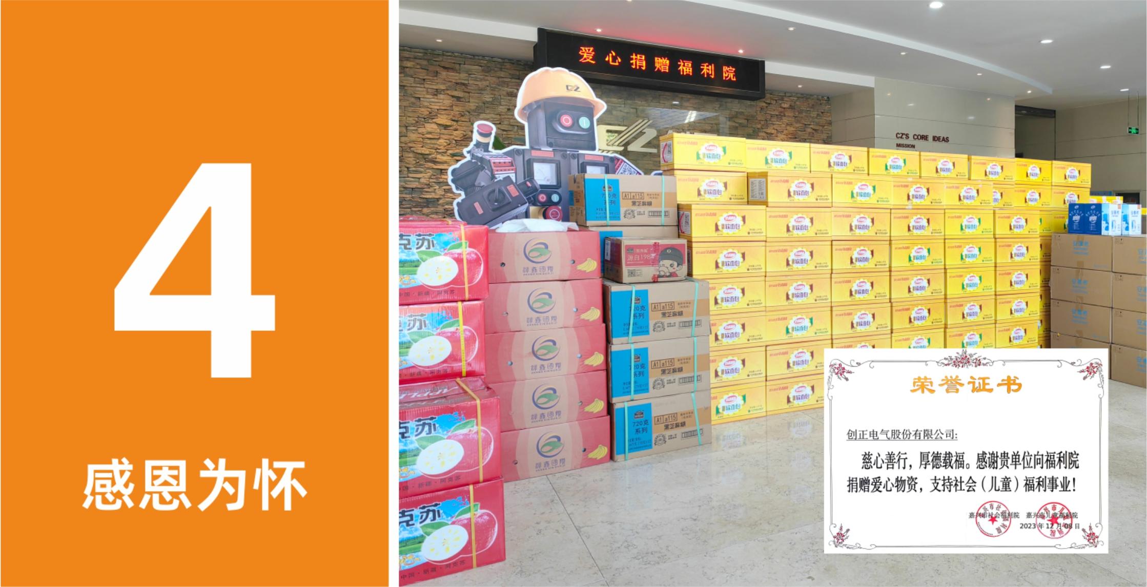 “只要人人献出一点爱,世界将变成美好的人间”!关心社会福利事业,关爱社会弱势群体的公益文化是我们创正企业文化的重要组成部分。回顾2023年创正参与的一系列公益项目,公司在高质量发展同时积极开展各项社会公益,传播正能量,承担企业社会责任,为社会发展贡献自己力量。