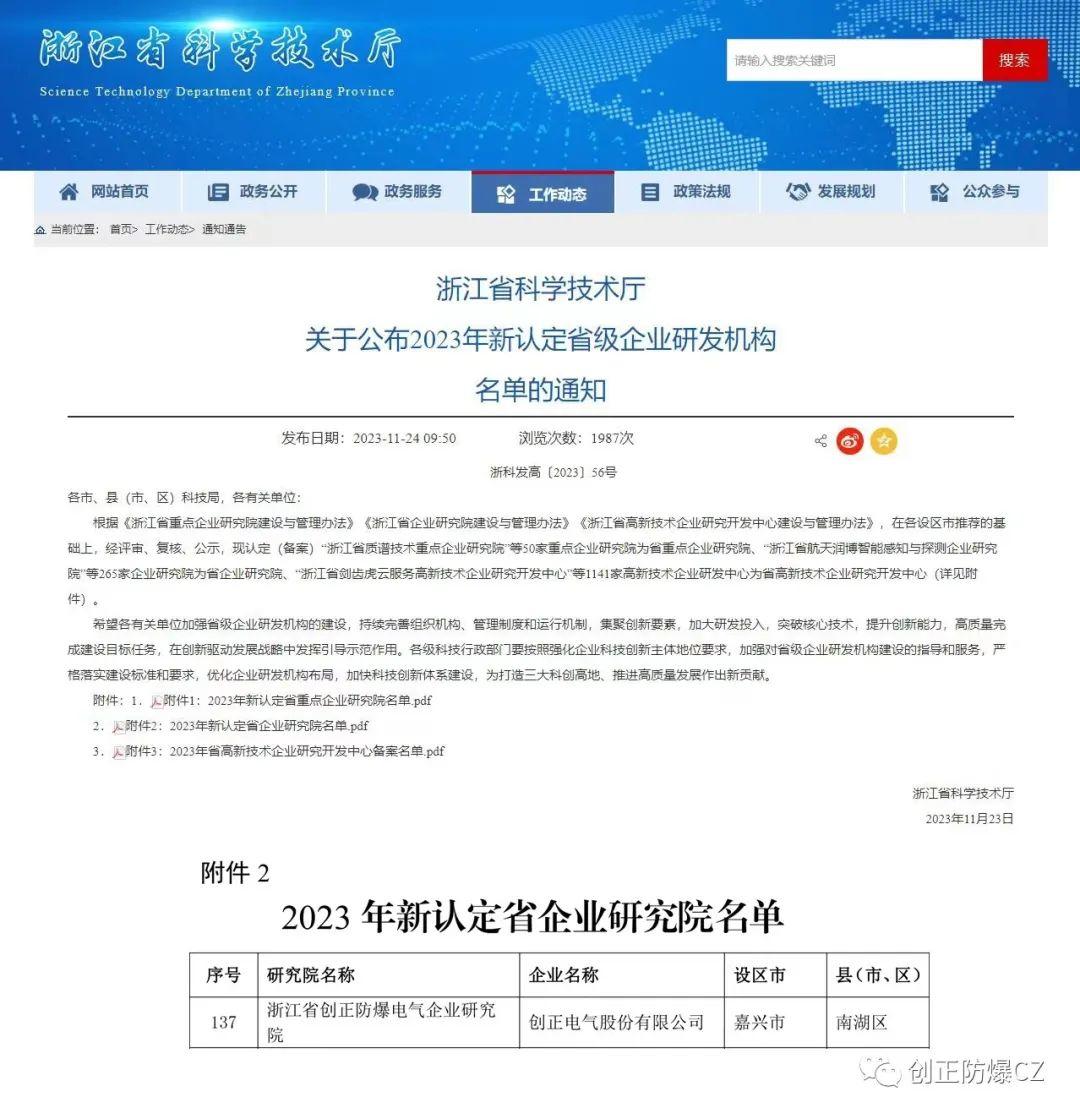近日,浙江省科学技术厅公布了2023年新认定省级企业研发机构名单,创正电气股份有限公司获得 “浙江省级企业研究院”荣誉称号。这是继荣获“国家高新技术企业”“浙江省级高新技术企业研究开发中心”和“浙江省专精特新企业”荣誉称号之后,对企业科研实力的又一次认可。